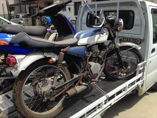 タイフーンは通勤で使用していたそうです。約7万キロ走っていました。凄いです。CB50Sは20年ほど前に購入したそうです。どちらも愛着が有りそうでしたが、処分のご依頼を頂きました。